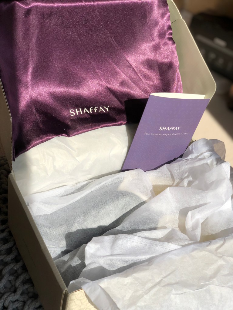 Anna Elshafei, the founder of Shaffay is a similar slipper lover. A former London lawyer, Anna changed careers mid-life when she wanted to create an elegant luxury slipper that women could wear all year round, were comfortable and stylish too. Now based in Canterbury, Anna has worked with her designers to create a range of Signature slippers in different colours to appeal to all slipper wearers with names such as Cairo, Paris, Shanghai and London. Although Anna was brought up in London (hence the name) she also lived in Shanghai with her husband. So the names of the slippers are born out of Anna’s love of cities and it was a pair of London Shaffay luxury slippers that were sent to us to try.