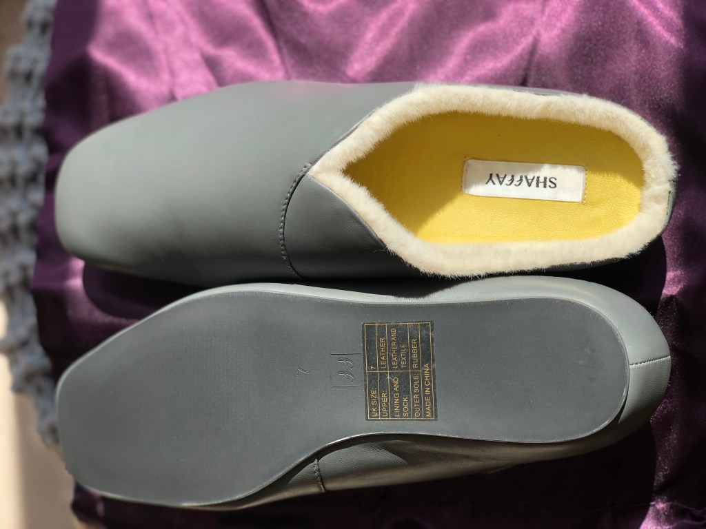We need to talk about the price too. £95 is a lot of money for a pair of slippers. My slippers usually cost around £10-£15 for the novelty range and as I said, last about one cold season. So at £95 a pair, that means these slippers would have to last around 6-10 years for them to be cost effective. It’s not unusual for a pair of leather shoes, worn outdoors all the time and in all weather would last 5+ years. I know I have well made leather shoes and boots that are over 10 years old and need little maintenance and that’s with commuting in all terrains. Shaffay the company has not been in operation that long for us to be able to ask them, but I will say that there is no reason why someone who loves slippers wouldn’t make these last.