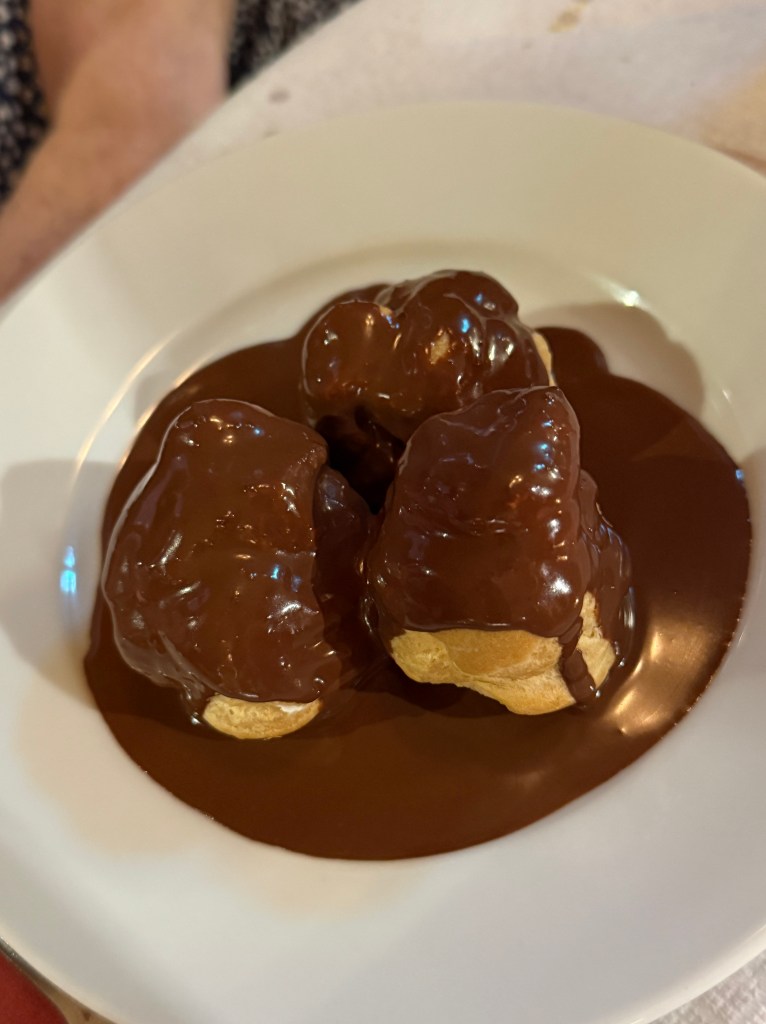 No Italian restaurant can be complete without the tiramisu or profiteroles, and in our case, it was both! The tiramisu was extremely light and fluffy, nothing like the Anglicised version we have in pizza houses today. There was a hint of coffee there but no alcohol to overpower the dish. The profiteroles were also homemade, with lashings of chocolate (but not sweet) sauce over them and filled with an incredibly light cream. We topped off the meal with an Italian coffee, just to add to the authenticity of our visit!