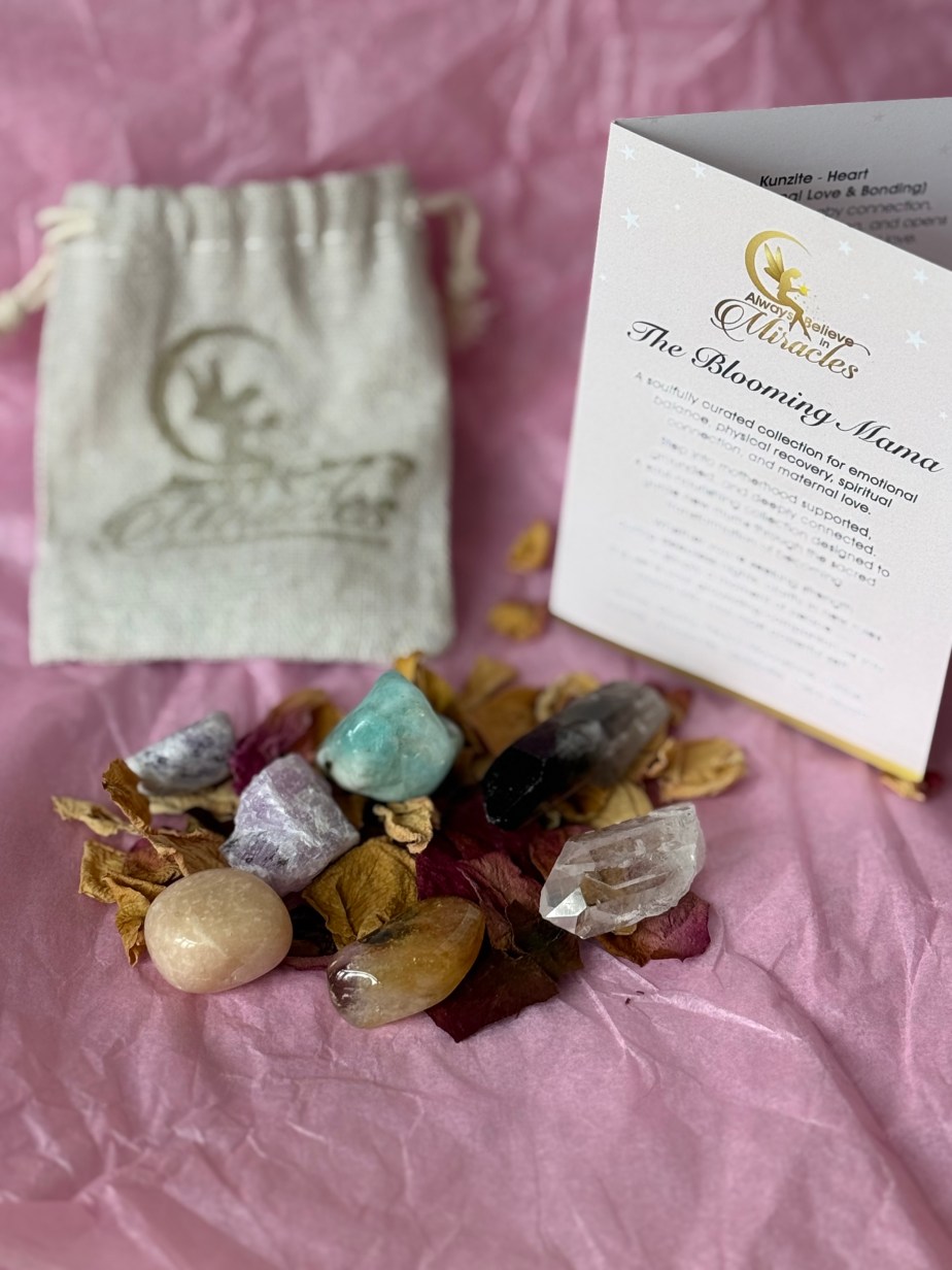 Whether you know about crystals already or are starting your journey, Blooming Mama’s Crystal Kit is a great tool for you, or to gift to someone else.