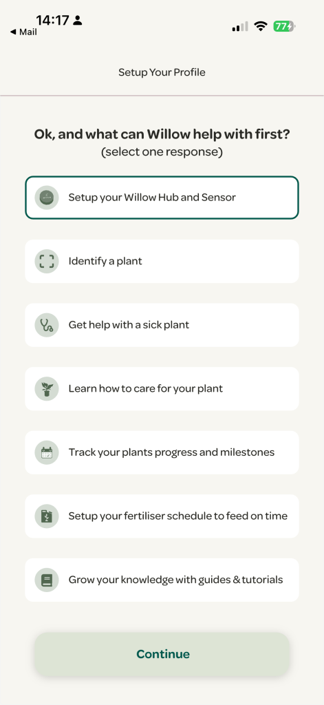 The app can also help with sick plants, teach you how to look after each identified plant, set up schedules including watering and fertilizing and monitor milestones. The setup screen go on to help you pair the probe with the hub and to use the wifi in your house, then sends you notifications on your phone to tell you when the plant needs watering, more light or moisture.