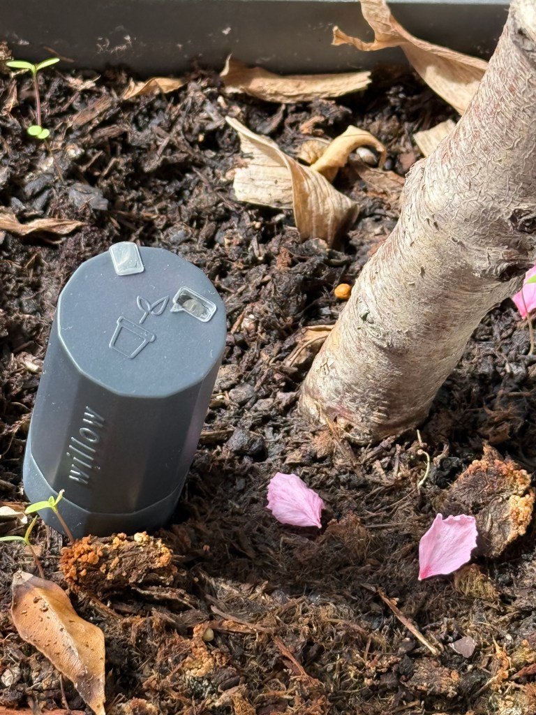 The instructions are relatively easy and once the app is set up it looks after itself. There is a QR code on the front of the box which you scan with your phone and the app downloads. The app walks you through all the steps for setup, including identifying the plant which the probe is going to monitor. If you don’t know what the plant is, there’s provision to take photos of the leaves and flowers and the app will look it up for you. I have a peach tree that needs a lot of water so I was keen to use Plant With Willow to help look after it.