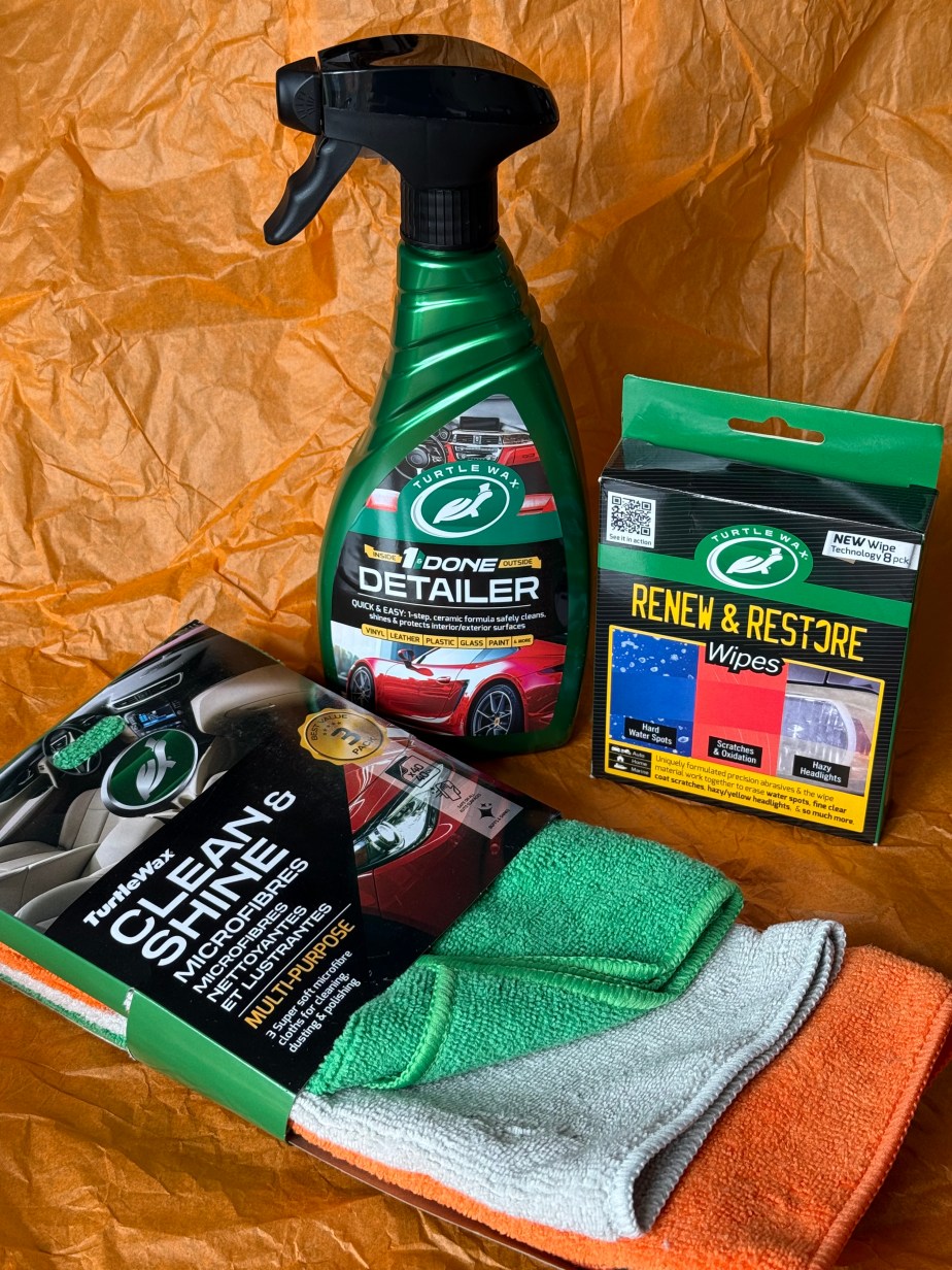 You could take your car to the car wash every weekend. Expensive? Yes, especially if you have to wait in queue for ages like you do at my car wash! Instead, keep a bottle of 1 & Done Detailer in your car, or even the Renew & Restore Wipes for both inside the car and outside. Turtle Wax have both new products available and sent them to us to try out.