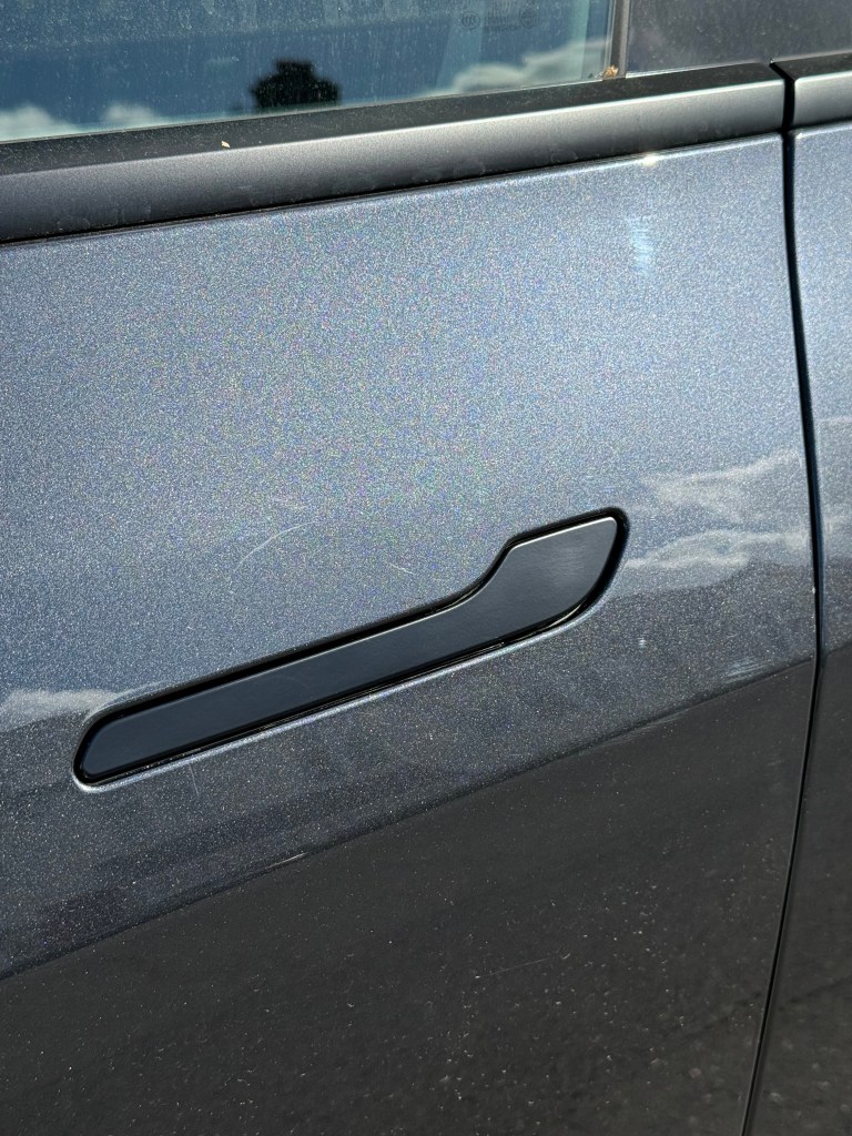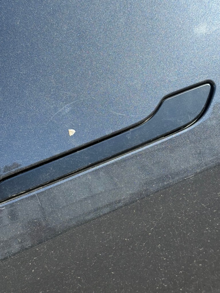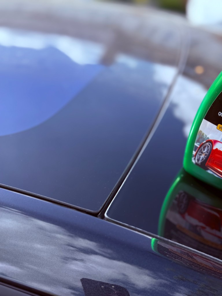 The 1 & Done Detailer is a 500ml spray for the outside bodywork of the car. It instantly cleans and shines bodywork and glass such as where green is starting to grow on this roof. The spray lifted the lichen quickly and the Turtle Wax Clean & Shine cloths remove all traces of dirt, leaving the paintwork sparkling. I also used 1 & Done Detailer on these light scratches on the door handle. It’s not removed them, but along with cleaning up the dirt, it does lessen the scratches altogether.