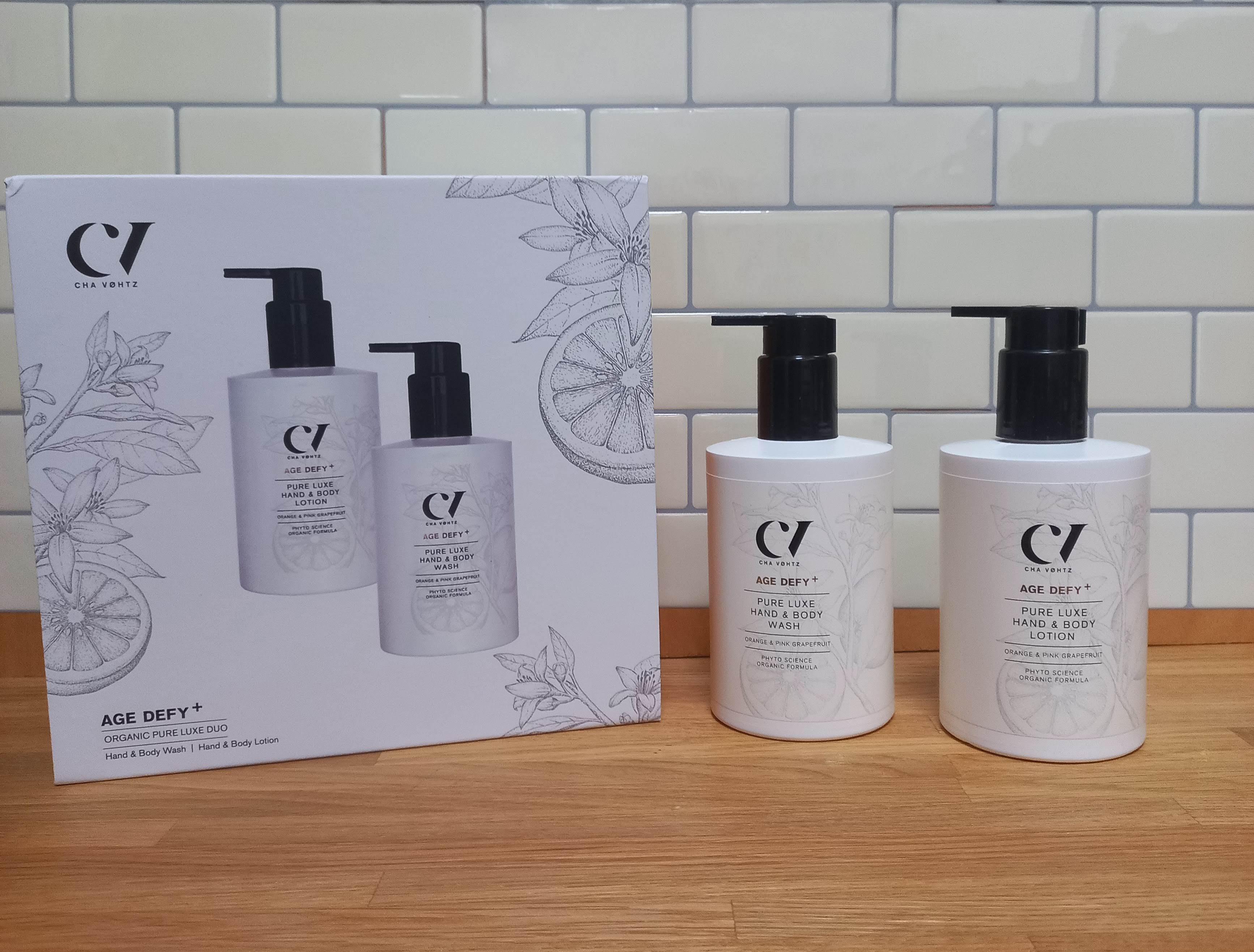 The Age Defy+ Pure Luxe Duo is a lovely choice for anyone over 30 who want to give their skin a real treat. Inside the sturdy gift box you’ll find two products – Pure Luxe Hand & Body Wash and Pure Luxe Hand & Body Lotion. The box has a bright orange interior and the elegant black-and-white illustrations of sliced citrus on the box and bottle gives a big hint to the zesty fragrance of the products.