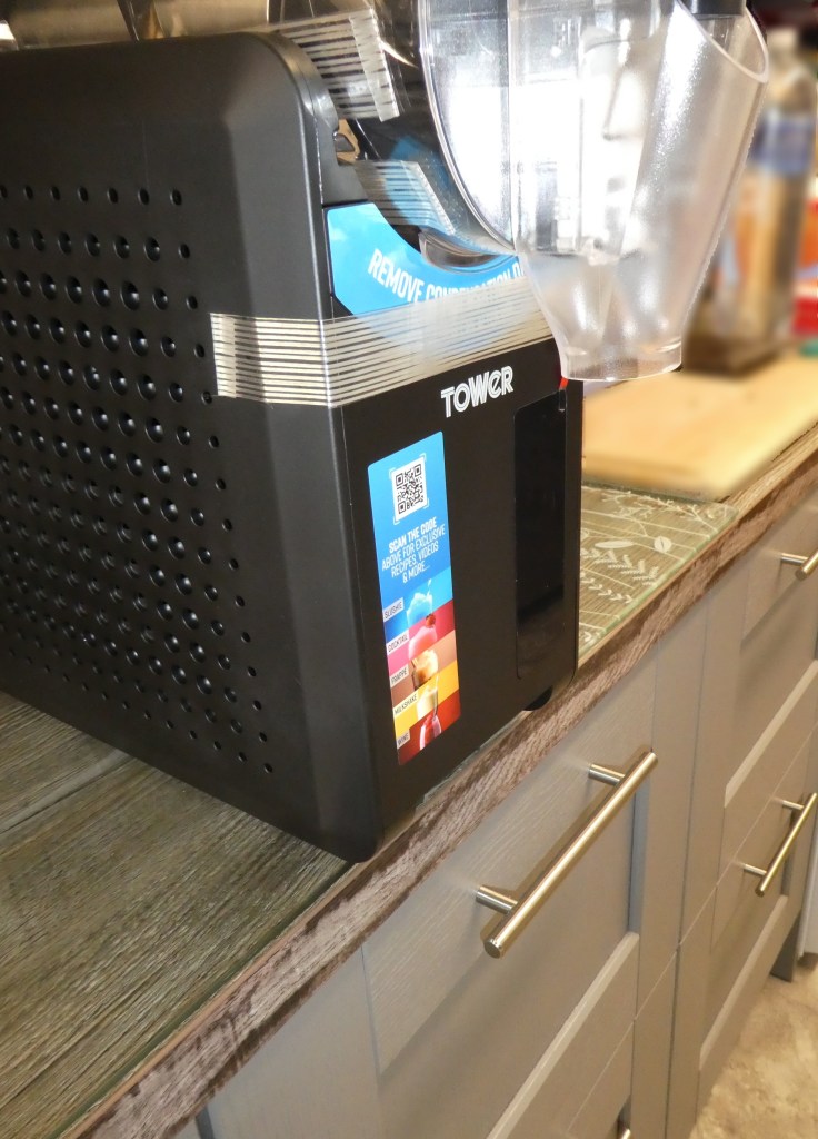 The drinks ‘drum’ has a minimum of 0.5l and a maximum of 1.9l fill, so a large capacity to make plenty of slushie mix or iced cocktails at once. However, where I think the machine does fall down slightly, you have to put sugared water in the drum to make the crushed ice mix. It specifically says that low calorie or sugar free slushies can’t be made. To use these mixes you would need to add lemon juice, salt and a low calorie sweetener called erythritol! Probably no low calorie for children then. However, as alcohol does contain sugar, frozen cocktails and other alcoholic drinks would be fine and very enjoyable in the summer. The Tower Slushie Fusion Maker doesn’t just do children’s drinks and cocktails, it can also make frappes and milkshakes. These too would have to contain some kind of sweet sauce or sweetener.e appliance doesn’t come with any recipes but going online to Tower’s website there’s a very detailed recipes book. Browsing through it becomes clear that many of your favourite drinks can have the Slushie Fusion treatment – Espresso Martini, Boozy Cherry Cola or Creamy Pina Colada Slushie! And the other sections were equally exciting – the Vegan Mocha or Matcha Latte Frappe compete with an Apple and Cinnamon Kombucha Slushie.
