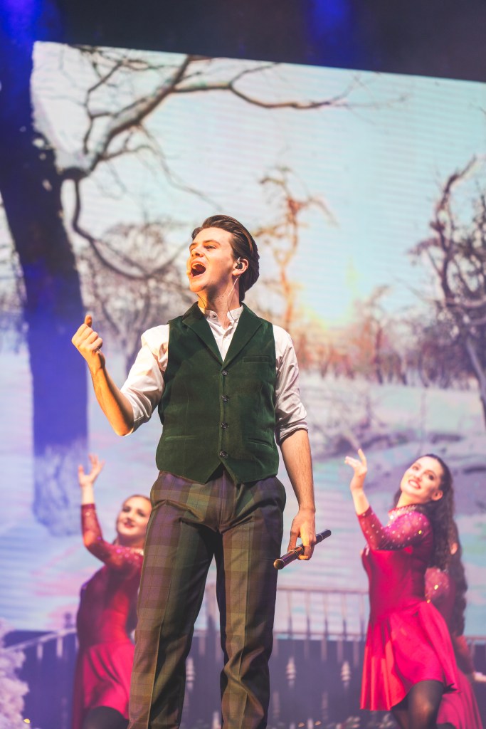 Starting the show with an Irish band of banjo, violin and guitar, we are introduced to the 6 Irish dancers who accompany the 130 minute long show. Shane is our main compere and brings us to the show, starting in New York with a lean towards an Irish Christmas tale. We meet the six Irish dancers early on and are treated to a Riverdance-style performance with songs such as Santa Claus is Comin’ To Town, Step Into Christmas and some traditional songs such as Oh Danny Boy, O Holy Night and old-fashioned Irish songs like The Galway Girl, The Irish Rover and Dirty Old Town.