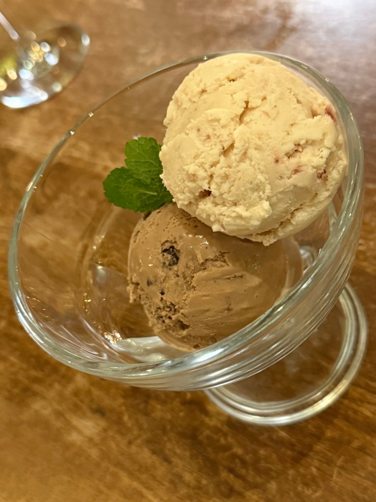 The Crisp Peppermint Tart is a layered dessert with sponge, a mascarpone-type filling and peppermint on top. There’s crisp biscuits lining the top of the pudding too, giving it a juxtaposition of textures. This was divine! I really loved the peppermint flavouring after such a heavy meal, and the mascarpone filling was bubbly and light, making it easier to digest. The sponge was also firm enough to call a proper dessert in itself – think Tiramisu but with peppermint on top and sprinklings of chocolate and biscuit. This is one that I want to make for myself at home!