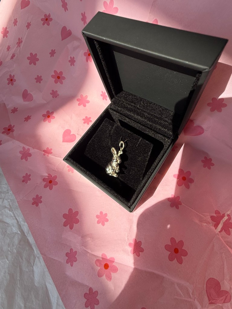 Available for £90 at: https://www.jeremy-hoye.co.uk/products/silver-bunny-charm