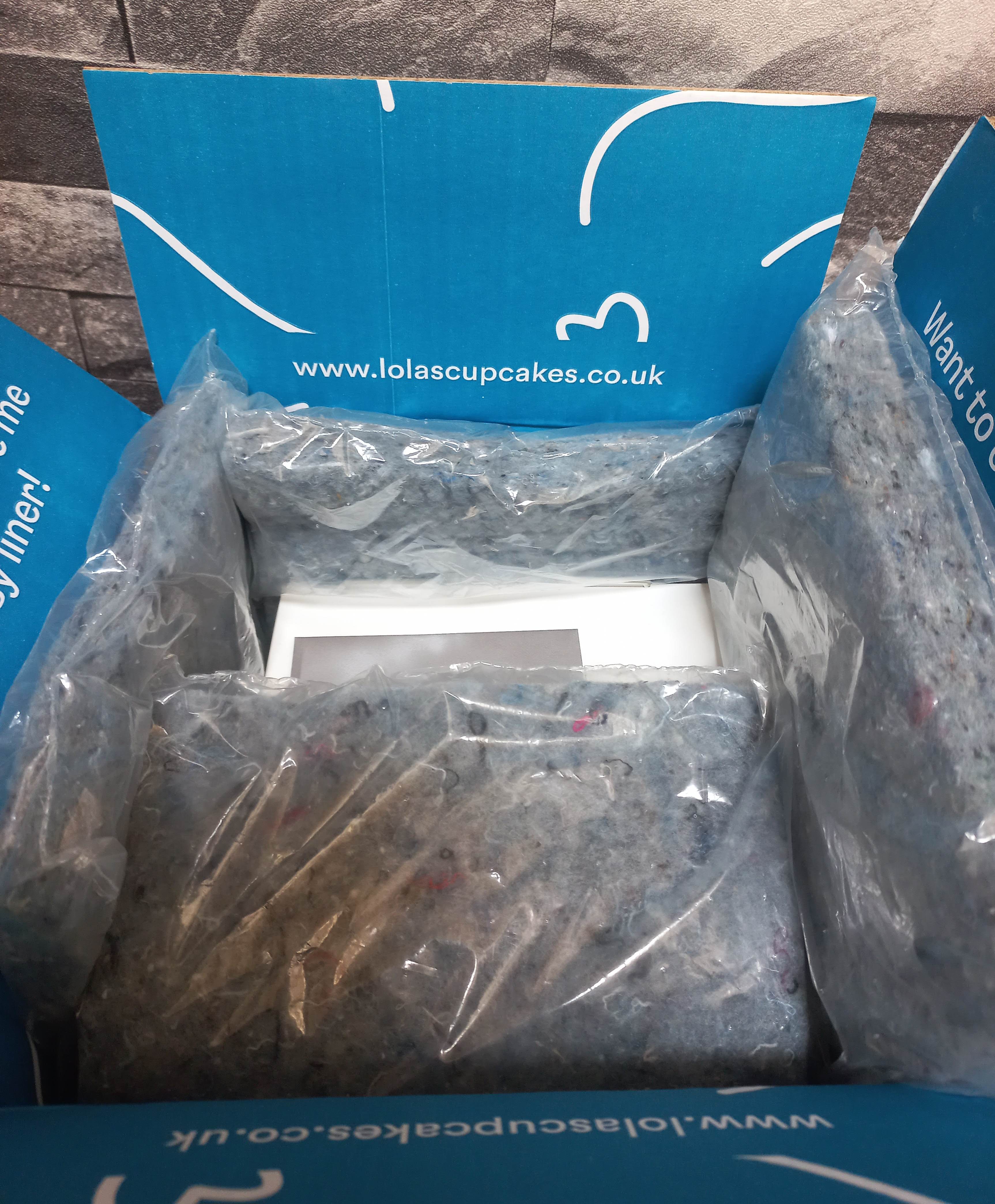 It’s always a bit of a worry when ordering cakes online, but this one was packaged so beautifully – snug in a sturdy box, with cool blocks and a thermal liner to keep everything just right during its journey. When it arrived, it looked as fresh as if it had just come out of the bakery that morning. Once opened the cake should be stored at room temperature in an air-tight container and whilst it is best eaten within 48 hours any leftovers can be kept in the fridge for another 2 days – although I can guarantee there’s no chance of that happening in our house!!! I was also pleased to find that the thermal packaging and ice packs can be sent back to Lola’s for reuse and there’s a prepaid label so there’s no cost either.